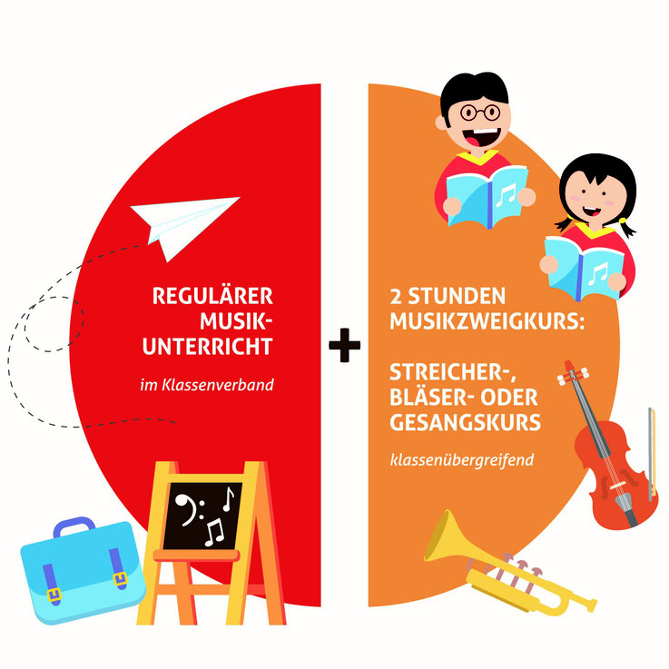 Lust auf noch mehr Musik? Im Musikzweig gibt es – zusätzlich zum Unterricht im Klassenverband – die Möglichkeit, ein Instrument zu lernen oder die Stimme zu trainieren. Zwei ergänzende Stunden Musik in der Woche, in denen du entweder ein neues Instrument (Streich- oder Blasinstrument) oder deine Stimme trainieren kannst! Mehr dazu erfährst du auch auf unseren Informationsblättern.