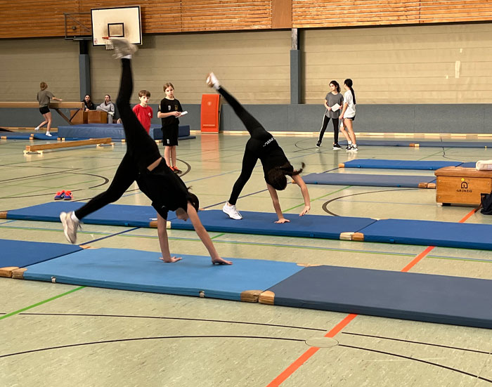 Während im Mannschaftssport Teamgeist, Fairness und Zusammenarbeit im Mittelpunkt stehen, können unsere Schülerinnen und Schüler bei den unterschiedlichen Individualsportarten wie Turnen, Step-Aerobic und Leichtathletik ihre persönliche Fitness und Ausdauer verbessern. Fester Bestandteil in Klassenstufe 6 ist außerdem der Schwimmunterricht.